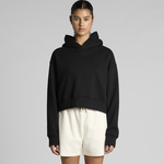 Pullover hood, drop shoulder, cropped full length, self-fabric lined hood, no drawcord, sleeve cuff ribbing
