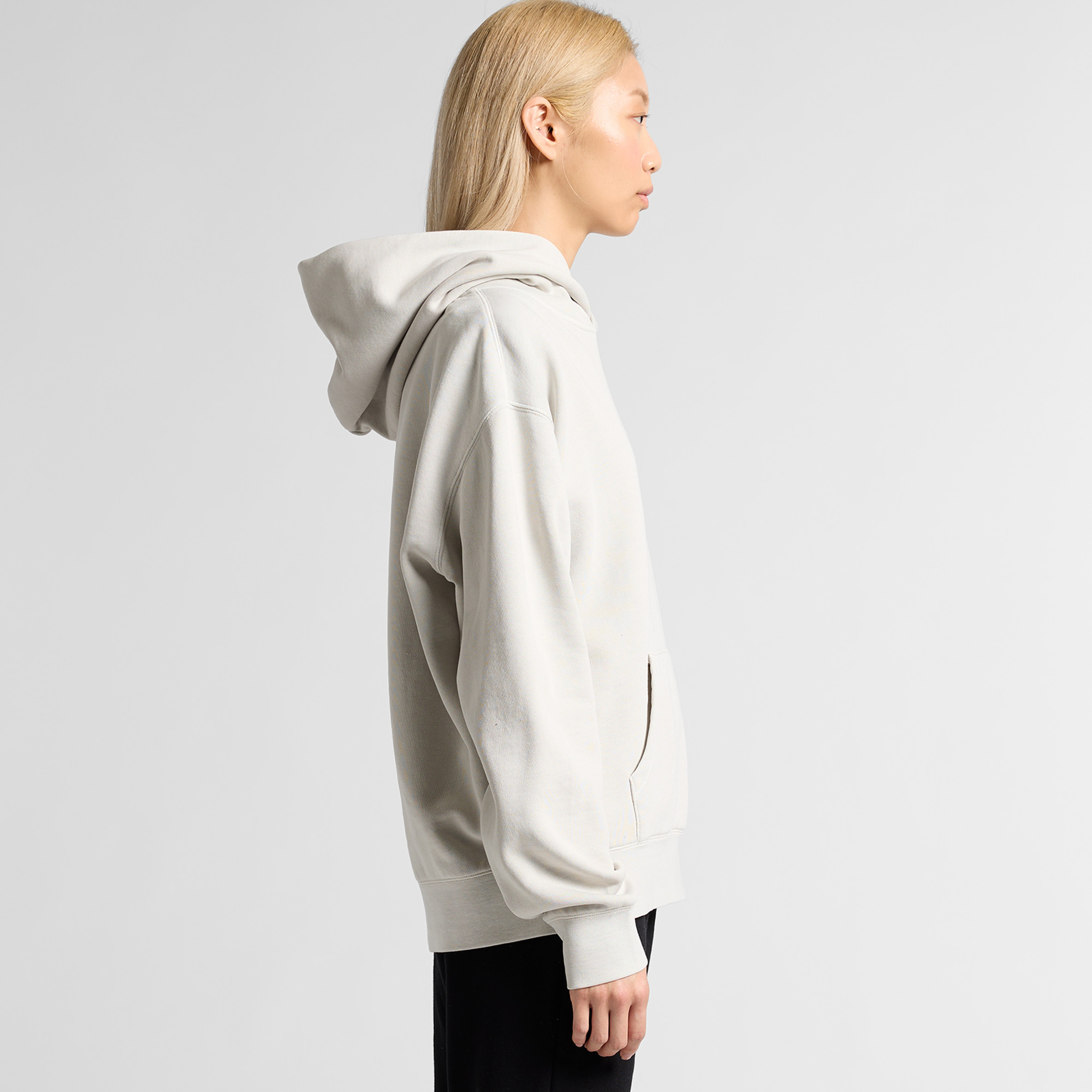 Pullover hood, drop shoulder, kangaroo pocket, self-fabric lined hood, no drawcord, garment dyed, sleeve cuff ribbing