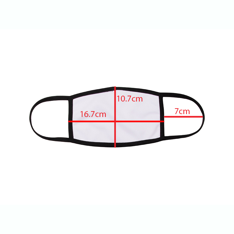 Small: Mask Area: 16.7 x 10.7 cm Earloop width is 7cm.