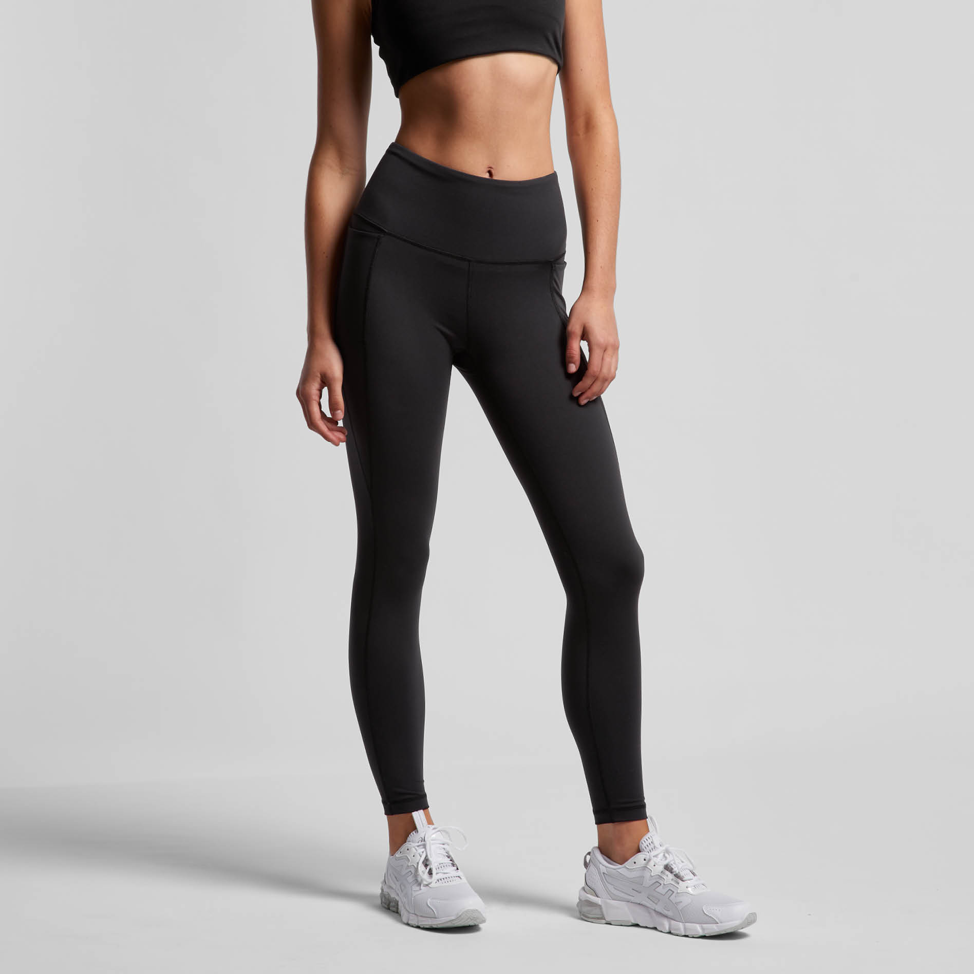 Matte finish, full length, high waist, 2 x side pockets, contour seam detailing, moisture wicking, quick drying, high elastane content for resilience