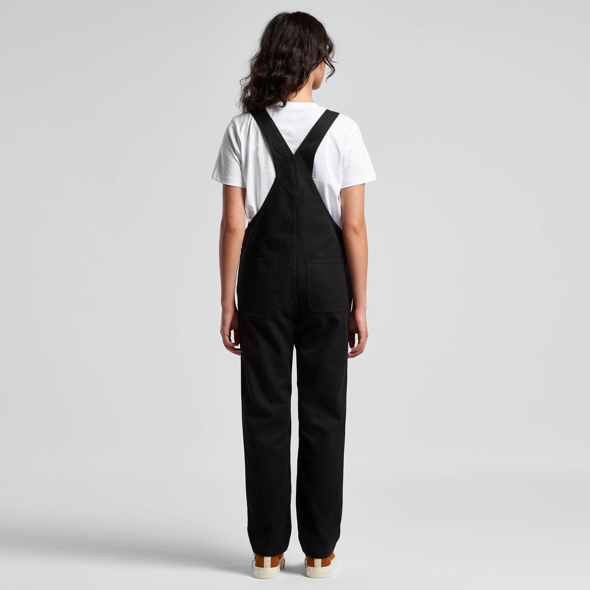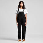 100% Cotton Duck canvas, adjustable shoulder straps, YKK metal hardware, 6 pockets, top stitch detailing, button closure, antique black hardware, YKK zip fly at front, double patch knees