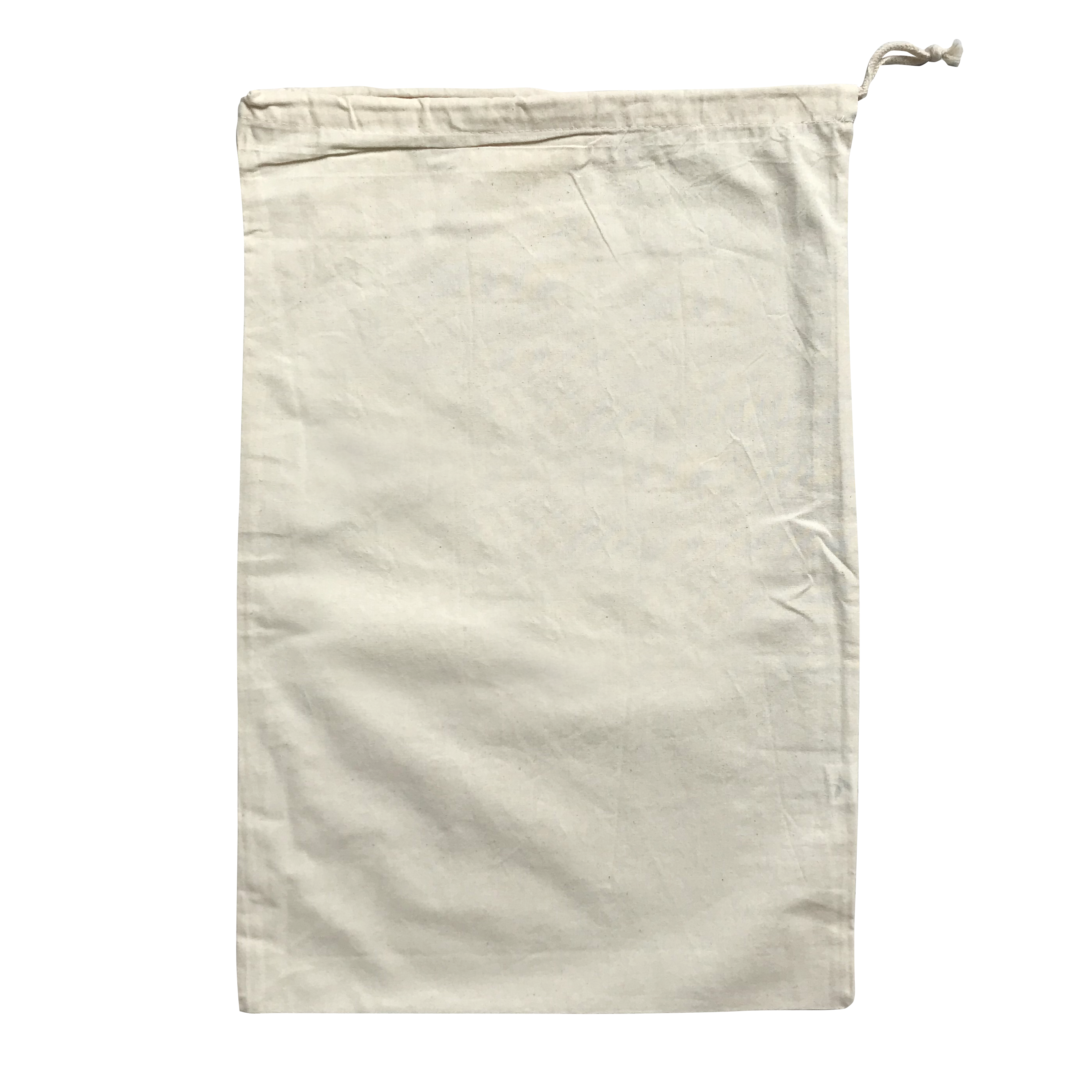 This drawstring calico bag is ideal for carrying fresh produce or wholefoods from the bulk bin. Or it could be a shoe bag, or for presenting gifts, or as a simple toiletries bag. It's convenient, washable, reusable and, at the end of it's life, it's also biodegradable.